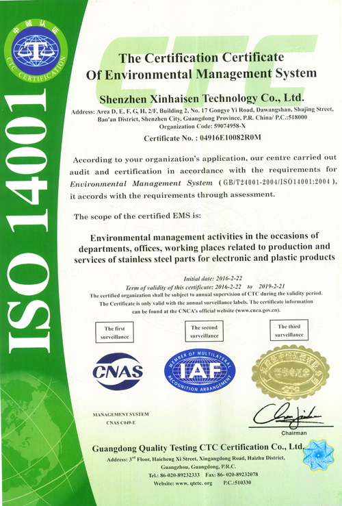 深圳市鑫海森科技有限公司成立于2006年,坐落于中國廣東省深圳市沙井鎮,地理位置優越,對于我司原物料采購及協作加工有無法比擬的迅速性和高品質性。 我司主要進行精密五金件的加工,產品涉及的范圍相當廣泛,涵蓋了通訊、聲學、光學、醫療、安防、機械、航空、陸運工具、家電等等領域。本公司目前產能1000^2全自動生產線6條。加工厚度從0.02mm-1.5mm產品的精度可以做到... 【查看詳情】